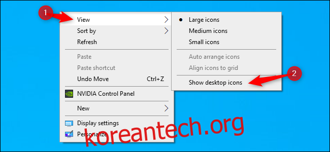 바탕 화면 아이콘을 일시적으로 숨기거나 다시 표시하기