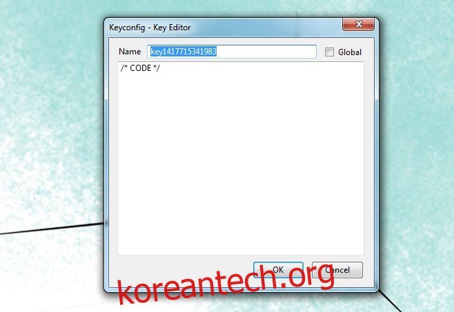 이름 필드에 원하는 키 이름을 입력합니다. 다음 탭으로 이동하는 단축키를 설정하려면 코드 영역에 다음 코드를 붙여넣으세요.