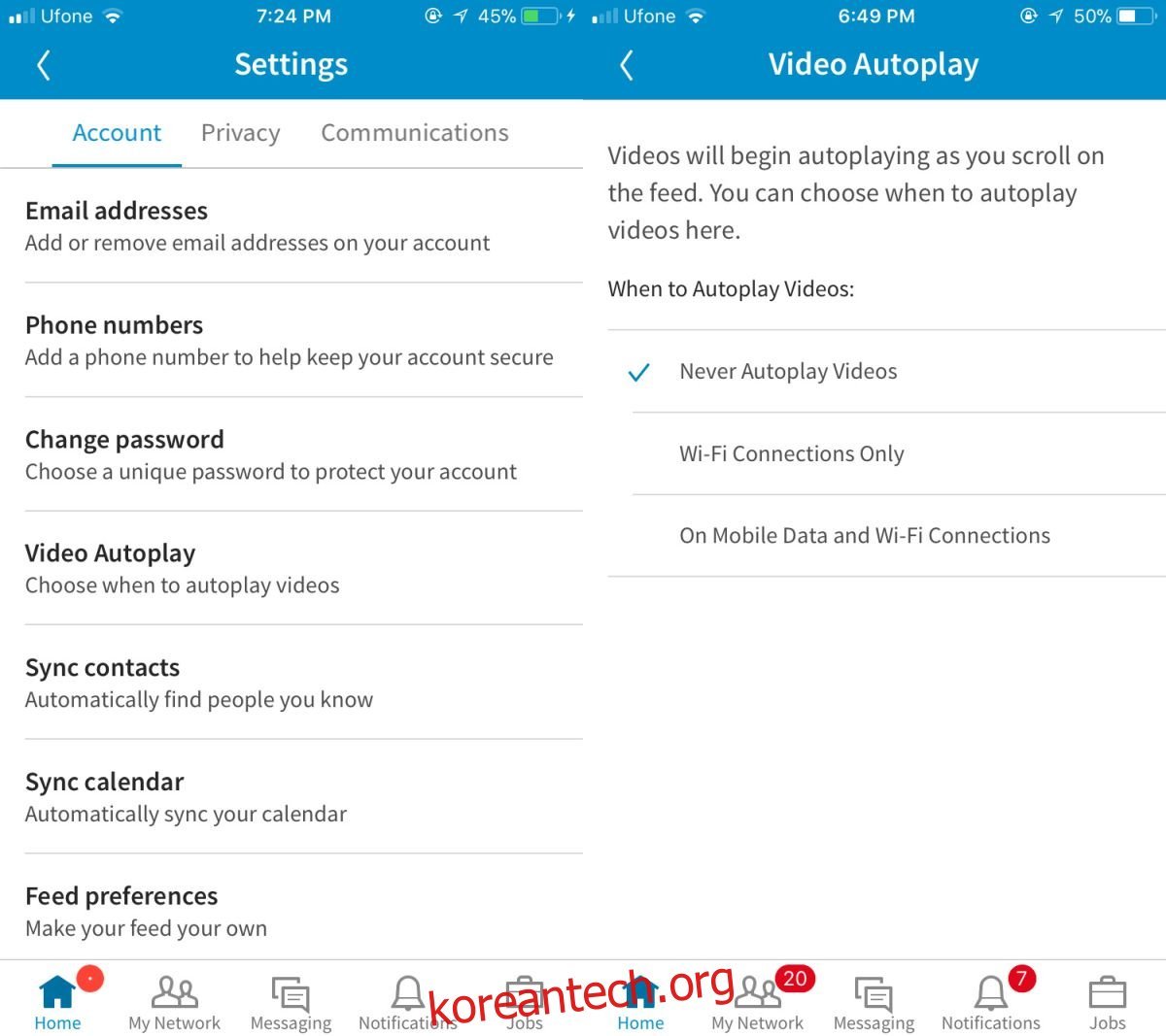 링크드인에서 동영상 자동 재생 끄는 방법