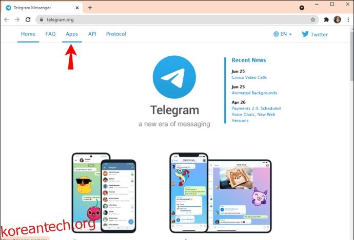 - 원하는 브라우저를 사용하여 텔레그램 공식 웹사이트에 접속합니다.