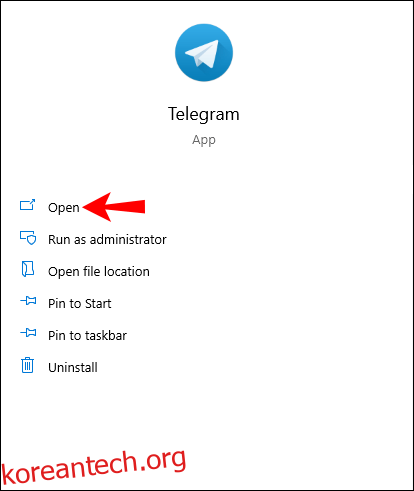 - 텔레그램 앱을 엽니다.