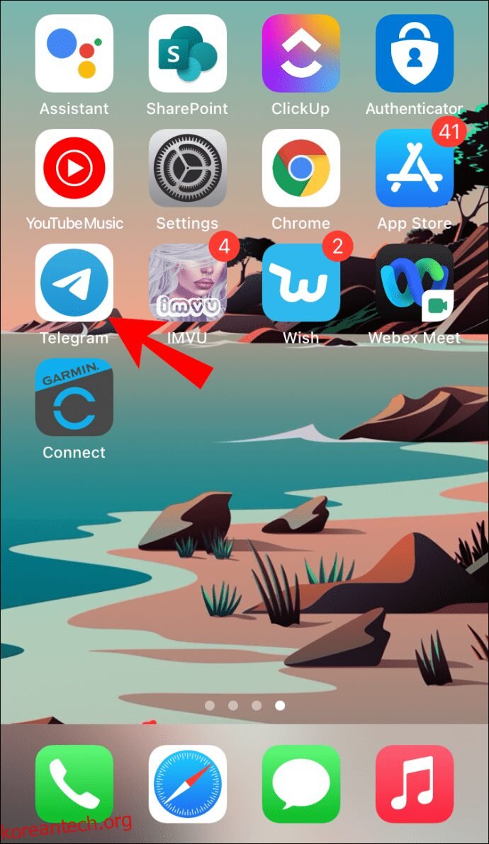- 텔레그램 아이콘을 찾아 탭하여 앱을 실행합니다.