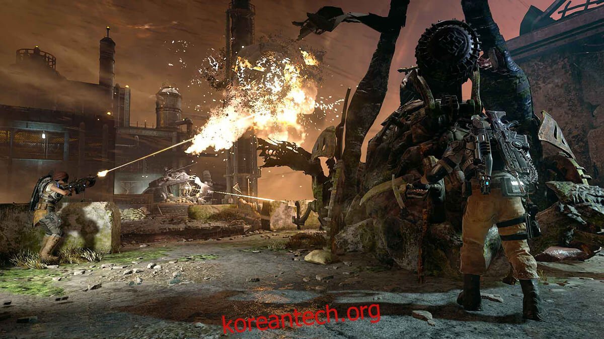 Gears of War는 3인칭 슈팅 게임으로, 근육질의 주인공 Marcus Fenix가 되어 질서정부연합(COG) 군대를 이끌고 “스웜”이라는 외계인 무리와 맞서 싸우는 내용을 다룹니다. 플레이어는 시리즈의 상징인 전기톱이 달린 기관총을 사용하여 외계인들을 물리치게 됩니다. 외계인의 침략이라는 설정은 게임에서 새로운 아이디어는 아니지만, 시리즈 특유의 고어 요소, 게임 플레이, 그리고 점점 더 흥미로워지는 스토리 덕분에 많은 사람들이 꾸준히 이 프랜차이즈를 즐기고 있습니다.