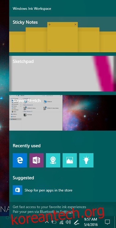 Windows 잉크는 Windows 10 기념일 업데이트에서 새롭게 도입된 기능 중 하나입니다. 이 기능의 핵심은 디지털 펜을 사용하여 시스템과 연결된 앱들을 보다 편리하게 사용할 수 있도록 돕는 것입니다. 디지털 펜이 없더라도 Windows 잉크는 유용한 기능들을 제공하며, 특히 스티커 메모 기능은 주목할 만합니다. 이전 Windows 버전(Vista 및 7)의 위젯 형태와 달리, Windows 잉크의 스티커 메모는 작업 영역 내에 통합되어 있습니다. 사용자는 원하는 만큼 메모를 생성하고 작업 공간에서 한눈에 확인할 수 있습니다. 메모는 화면에 항상 표시되는 위젯이 아니지만, 필요할 때 언제든지 접근할 수 있습니다. 이 기능은 이미 Preview Build 14332에서 처음 선보였습니다. 이제 이 기능을 사용하는 방법을 알아보겠습니다.