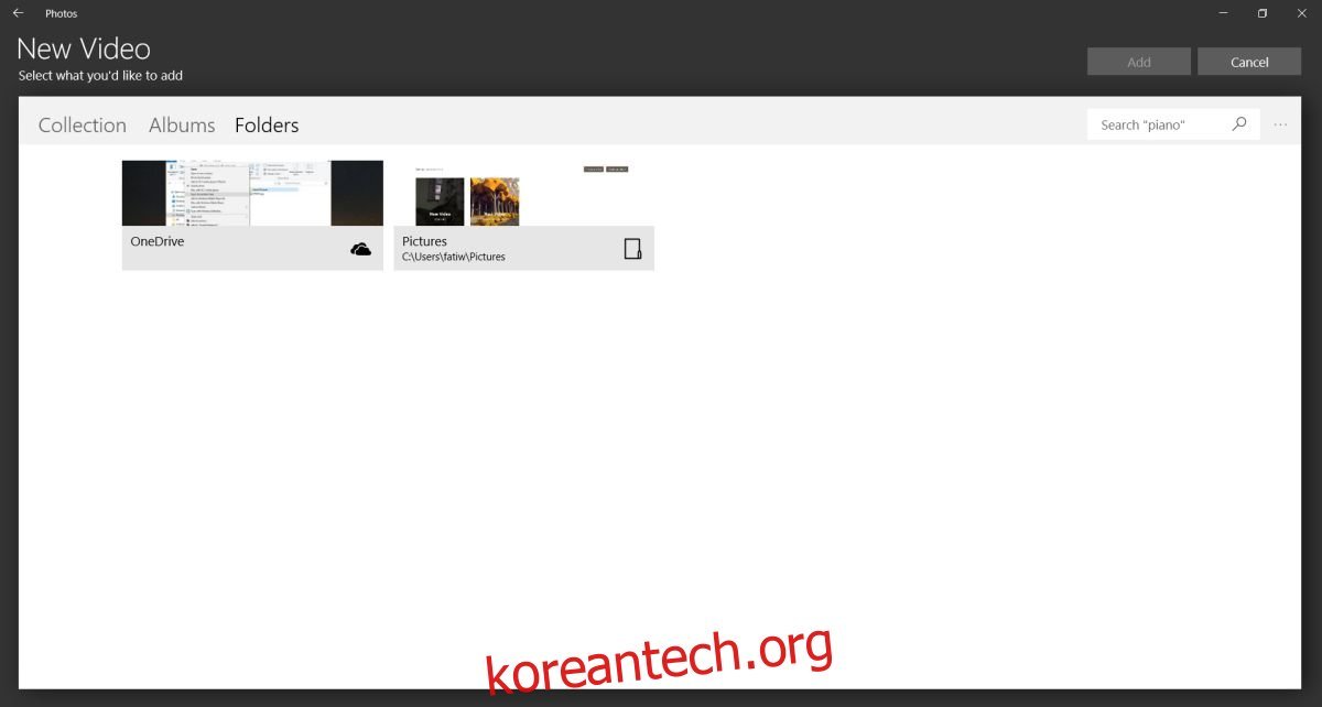 폴더를 탐색하여 비디오에 추가할 사진과 비디오들을 선택합니다.